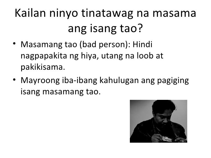 It is the carpenter who has no bolo knife. 1192017 Ano ang kaugnayan ng isip at kilos loob. Contextual translation of masama ang mag tanim ng galit into English.