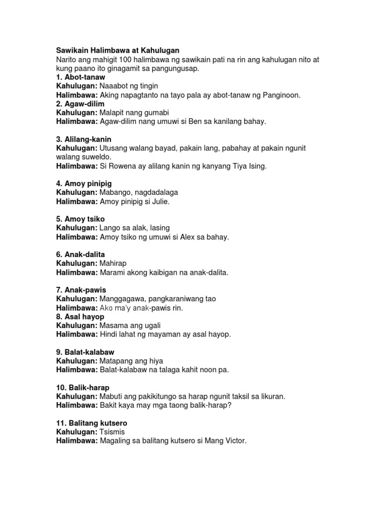Sawikain Halimbawa At Kahulugan Pdf
