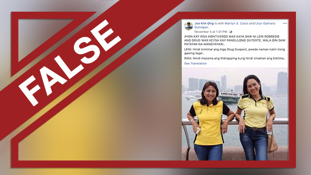 False Robredo Hontiveros Quotes On Drug War Kidnapping
